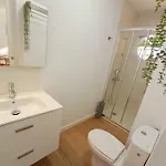 Denna lägenhet på 111 m^2 har mathörna, soffa och te/kaffebryggare i varje rum. Några rum har en terrass. Allergivänliga kuddar och sängkläder tillhandahålls. Gäster kan använda separat toalett och dusch.
